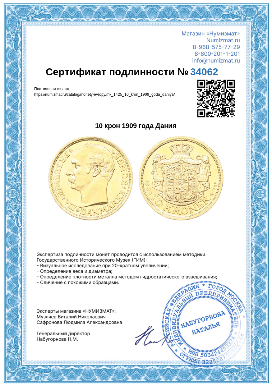 Монета 10 крон 1909 года Дания [Артикул: MK-1425]