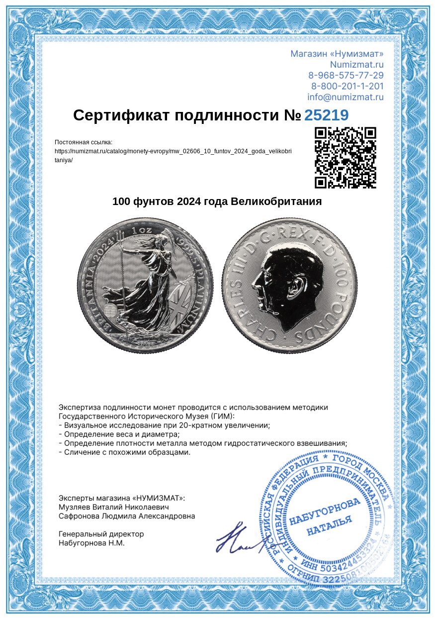 Монета 100 фунтов 2024 года Великобритания [Артикул: MW-02606]