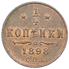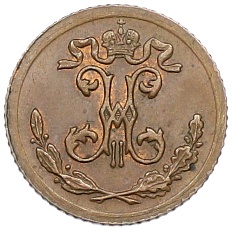Чеканили при Николае II также монеты из меди. Это были мелкие разменные монеты номиналами 1, 2, 3, 5 копеек, а также дробные номиналы, ½ и ¼ копейки.
