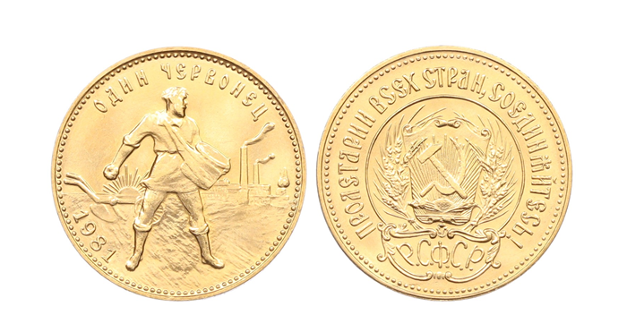 Золотой червонец «Сеятель» 1981 года. ММД.