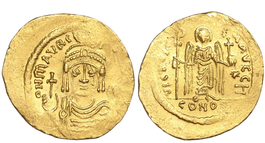 Золотая монета «Солид» Византийской империи. 582-602 годы н.э.
